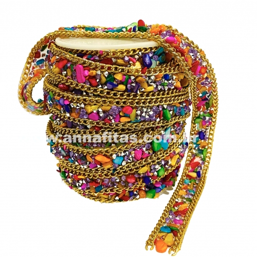 Corrente de Metal Dourada com CASCALHO COLORIDOS largura 15mm por 1 Metro Ref: 2404C15