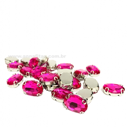 Chaton Engrampado Niquel Oval 10x14mm em Acrílico com 25 unidades Cor - ROSA PINK ENGR160