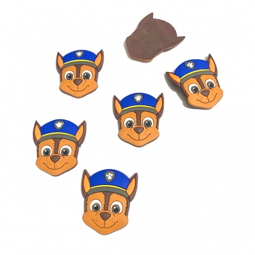 Aplique em Silicone PATRULHA CN BRANCO MARRON E CHAPEL AZUL por Unidade 3,5x4,0cm Ref- A3751