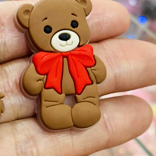 Aplique em Silicone URSO MARRON LAÇO Vermelho por Unidade de 3,5x2,5cm Ref- AF0014